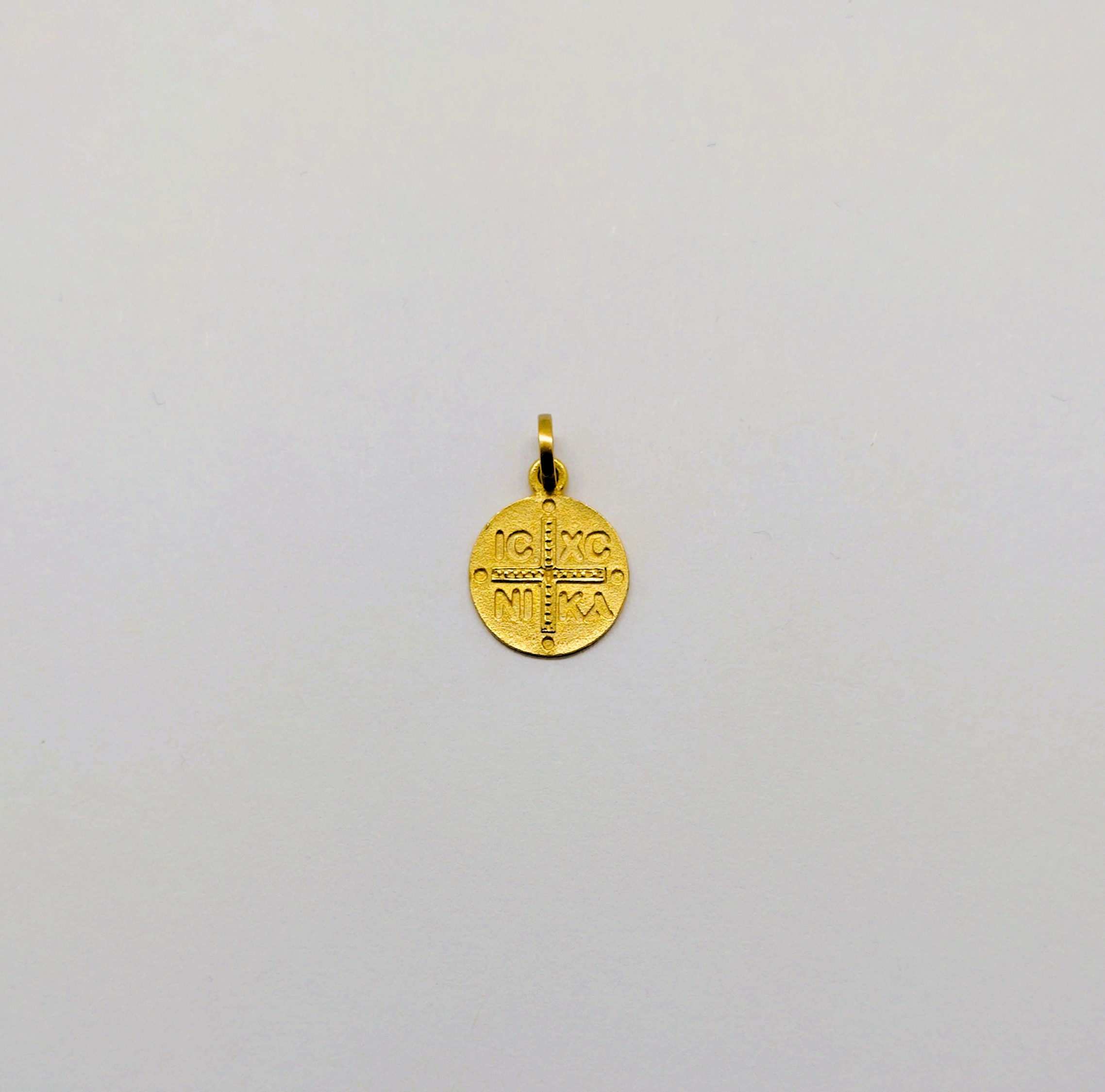 Κωνσταντινάτο. Χρυσό 9Κ με επιχρύσωση 22Κ. Ανάγλυφα στοιχεία. Συνοδεύεται από διακριτική επίχρυση μεταλλική παραμάνα. Συνδυάζεται με ματάκι ( παρακαλούμε επισκεφτείτε την κατηγορία ‘Μάτια’ ). Στις αναγραφείσες διαστάσεις συμπεριλαμβάνεται ο κρίκος.